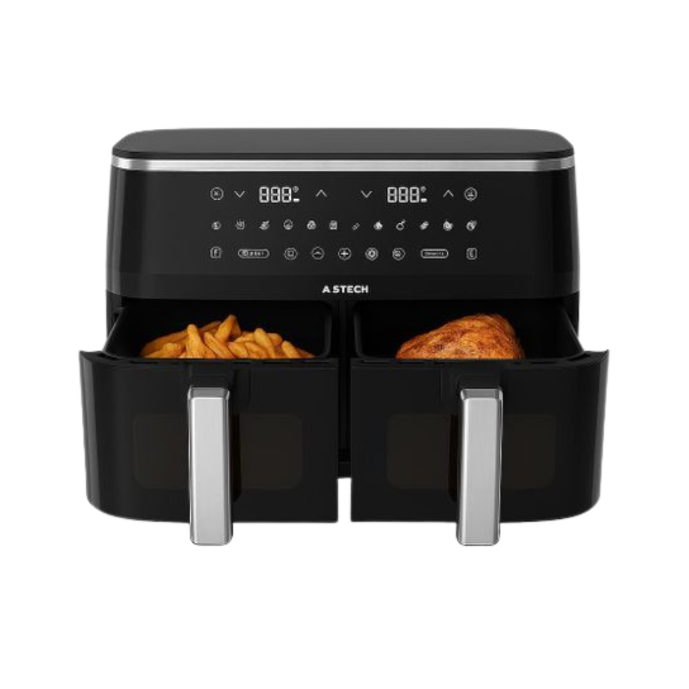 La Friteuse à Air Astech AF010B-XB 10L est l’appareil idéal pour des repas sains, rapides et délicieux. Grâce à sa technologie de cuisson par air chaud, elle permet de cuire vos plats préférés avec peu ou pas d’huile, pour un résultat croustillant et savoureux tout en réduisant les graisses. Son double compartiment indépendant de 10 litres vous permet de préparer deux plats différents simultanément, chacun avec son propre réglage de température et de temps.